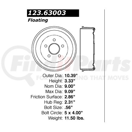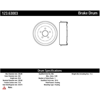 Centric C-Tek Standard Brake Drum 123.63003 | 123.63003