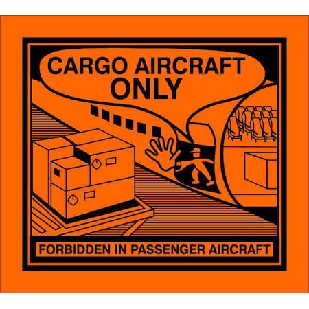' DOT Label, Legend Cargo Aircraft Only, Legend/Background Color Black/Orange, Material Paper, Self-Sticking, Height 5 In., Width 4-1/2 In., Package Quantity 500 '