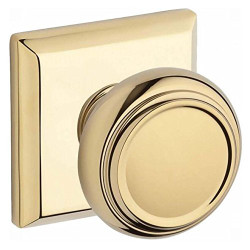 Baldwin PS.TRA.TSR Traditional Passage Knobset with Traditional Square Rose, Polished Brass