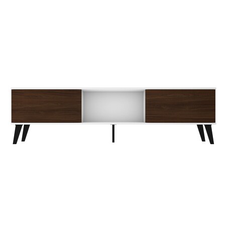Manhattan Comfort Doyers Mid-Century Modern Living Room TV Stand, 70.87", 70.87 Inch Wide, White/Nut Brown