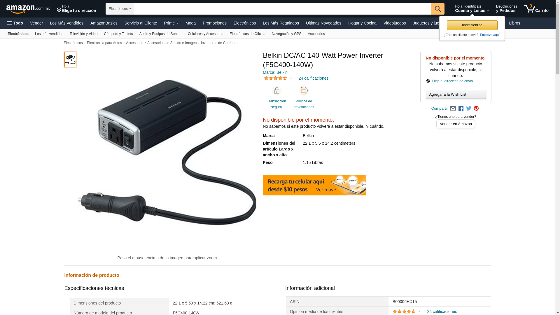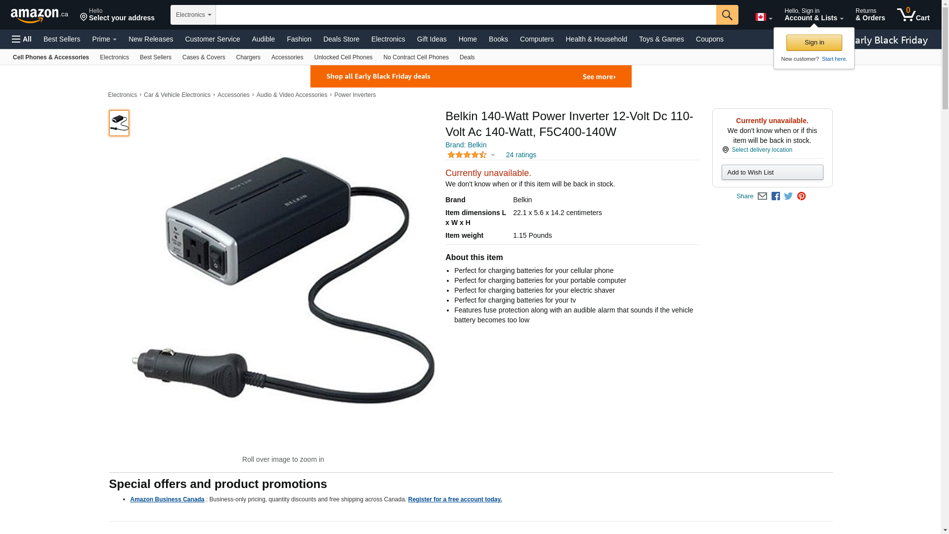 - Belkin Ac Anywhere 140w Power Inverter - 12v Dc - 110v Ac - Continuous Power:140w