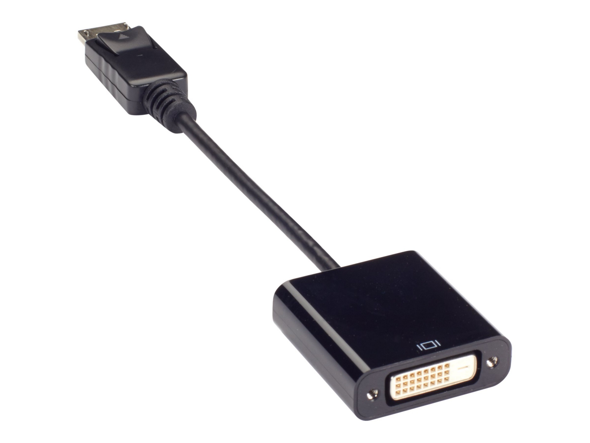BlackBox, VA-DP-DVID-A, Video Adapter Dongle, DisplayPort Male - DVI-D Female Features: Connect the DisplayPort male output of your computer to a DVI-D input of a HDTV, projector, or display. Supports 1080p (1920 x 1080) resolutions. Transmits high-performance digital audio and video signals. Supports TMDS signaling. 34- and 32-AWG wire. Dongle is 8-inches long. Guaranteed for life.