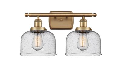 INNOVATIONS LIGHTING 916-2W-BB-G74 BALLSTON LARGE BELL 2 LIGHT 16 INCH SEEDY GLASS VANITY LIGHT, BRUSHED BRASS,...