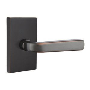 Brass Modern Hardware Collection - Half Dummy Right Handed Sion Door Lever With Modern Rectangular Rose in Oil Rubbed Bronze by Emtek - 5052SIO.HALF.US10BRH | MyKnobs