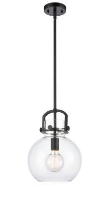 Innovations Lighting 410-1SM-BK-G410-10CL Newton Sphere - 1 Light Stem Hung Pendant in Industrial Style-15.38 Inches Tall and 10 Inches Wide, Finish Color: Matte Black, Glass Color: Clear