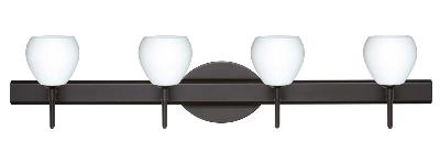 4SW-560507-BR Finish: Bronze, Glass Shade: Opal Matte Features: -Bath vanity.-Available in several glass shades.-Handcrafted glass.-Installs directly to 4'' octagonal outlet box.-Can be mounted upward or downward.-Dimmable with standard incandescent dimmer.-Decorative finials can be removed for down lighting applications.-Suitable for damp locations (interior use only).-UL or ETL listed. Includes: -Accommodates (4) 40W G9 halogen bulb (included). Options: -Available in bronze, polished nickel or satin nickel finishes. Construction: -Body construction: Stamped steel. Specifications: -120 Volts. Dimensions: -Shade height: 3.87'' H x 4.12'' W x 4.12'' D.-Backplate height: 4.5''.-Overall dimensions: 7.25'' H x 30.375'' W x 5.5'' D. Collection: -Tay Tay collection.