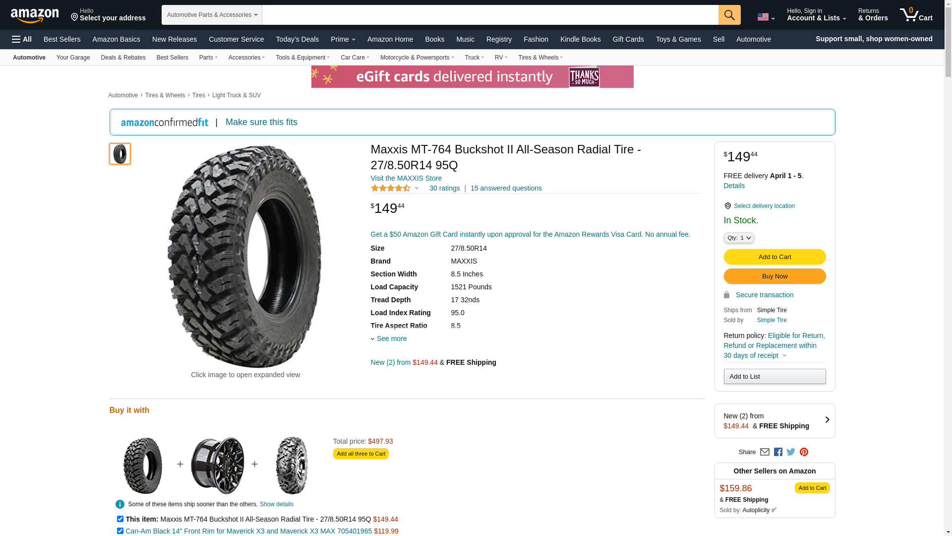 ![]() bbwheelsonline.com | MAX TL13808600 | 1 | 16 | 1 | 1 @ $149.97 |