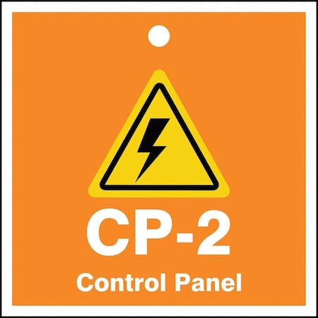 Accuform TDK202VPE Plastic "CP-2 Control Panel" Energy Source Shape ID Tag, 2-1/2" W x 2-1/2" L, Yellow/Black/White on Orange