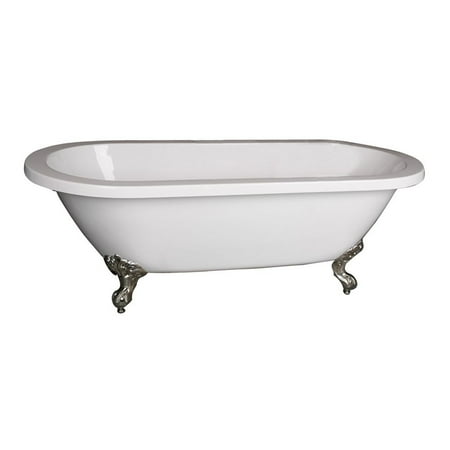 BARCLAY ATDRN70I-WH-BN COLLIER 70 INCH ACRYLIC FREESTANDING CLAWFOOT OVAL SOAKER DOUBLE ROLL TOP BATHTUB - WHITE,...