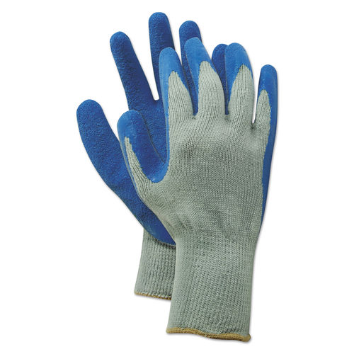 Boardwalk BWK00027L Rubber Palm Gloves, Polyester Shell; Latex Palm, Large, Gray/Blue (Pack of 12)