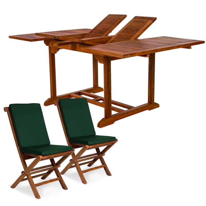 All Things Cedar TD72-22-G Teak Extension Patio Table & Folding Chair Set with Cushions, Green