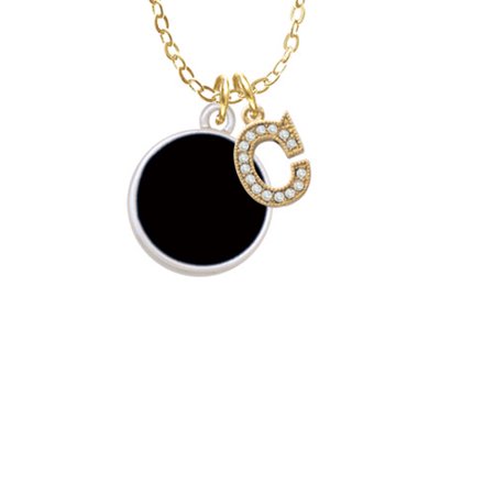 Silver Tone Small Black Enamel Disc - C - Gold Tone Crystal Initial Sophia Necklace. Silver Tone Small Black Enamel Disc charm is approx. 0.6 x 0.6 x 0.1 inches (HxWxD) not including loop. Charm has a smooth Silver Tone back. 1.5mm Gold Tone Dainty Cable Chain Necklace: 18 inches with 1 inch extender chain. Crystal Initial is approximately 0.38 Inches long not including loop. Lobster Claw Clasp. Dainty and delicate, the Sophia Collection is about wearing an expression of what she cherishes, with just a little bling to brighten her day. Please notify us if you would like an initial not listed here. We are a family owned company in the U.S.A since 1977. PLEASE NOTE: Our products are lead safe, but are not intended for children 14 years and younger.