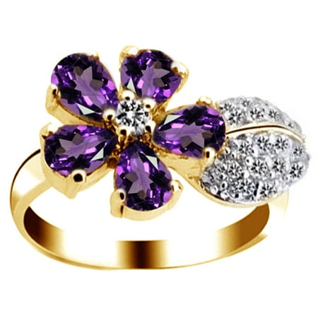 <ul> <li>Metal Type : 14k Yellow Gold Over Sterling Silver GUARANTEED, Authenticated with a 925 Stamp</li> <li>Gem Type :- Simulated Amethyst (Lab Created); Cubic Zirconia (Lab Created)</li> <li>Stone Shape :- Pear Shape & Round Shape</li> <li>Stone Setting type :- prongs</li> <li>Stone Clarity :- VVS1-VVS2 & VVS1-VVS2, Stone Color :- Violet; White</li> </ul>