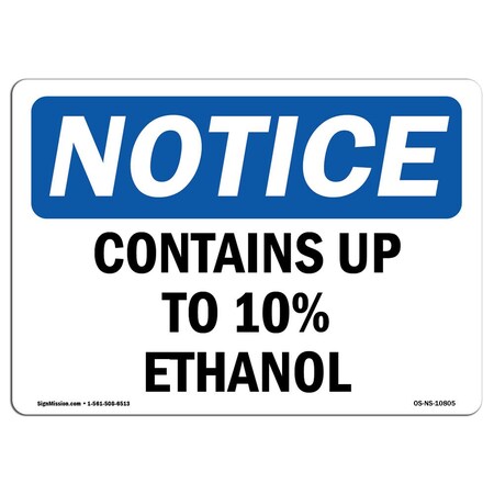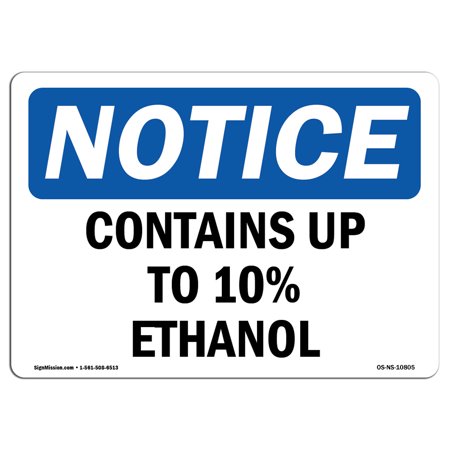 OSHA Notice Sign, Contains Up To 10% Ethanol, 24in X 18in Decal