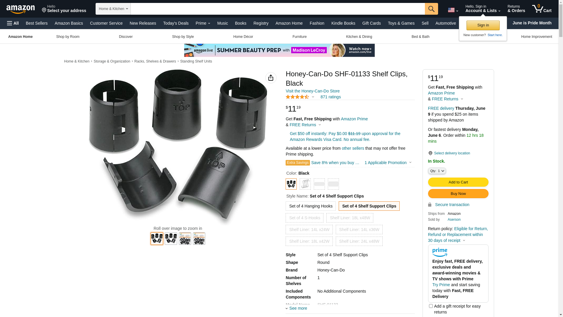Honey-Can-Do SHF-01133 Shelf Clips, 1-Pack, Black
