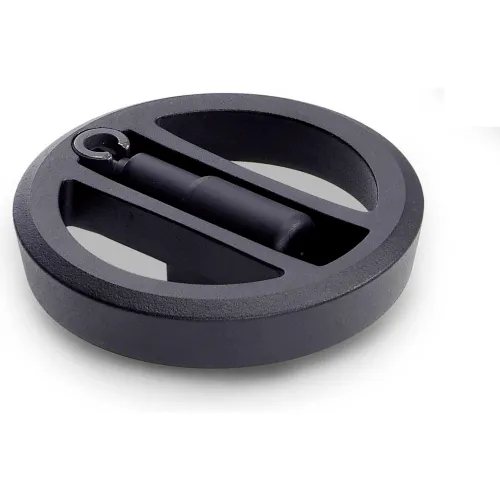 JW Winco - 20MRXMK/R - Alum Flat-Faced Spoked Handwheel w/Safety Handle 7.87" Dia x 20mm Bore-Black