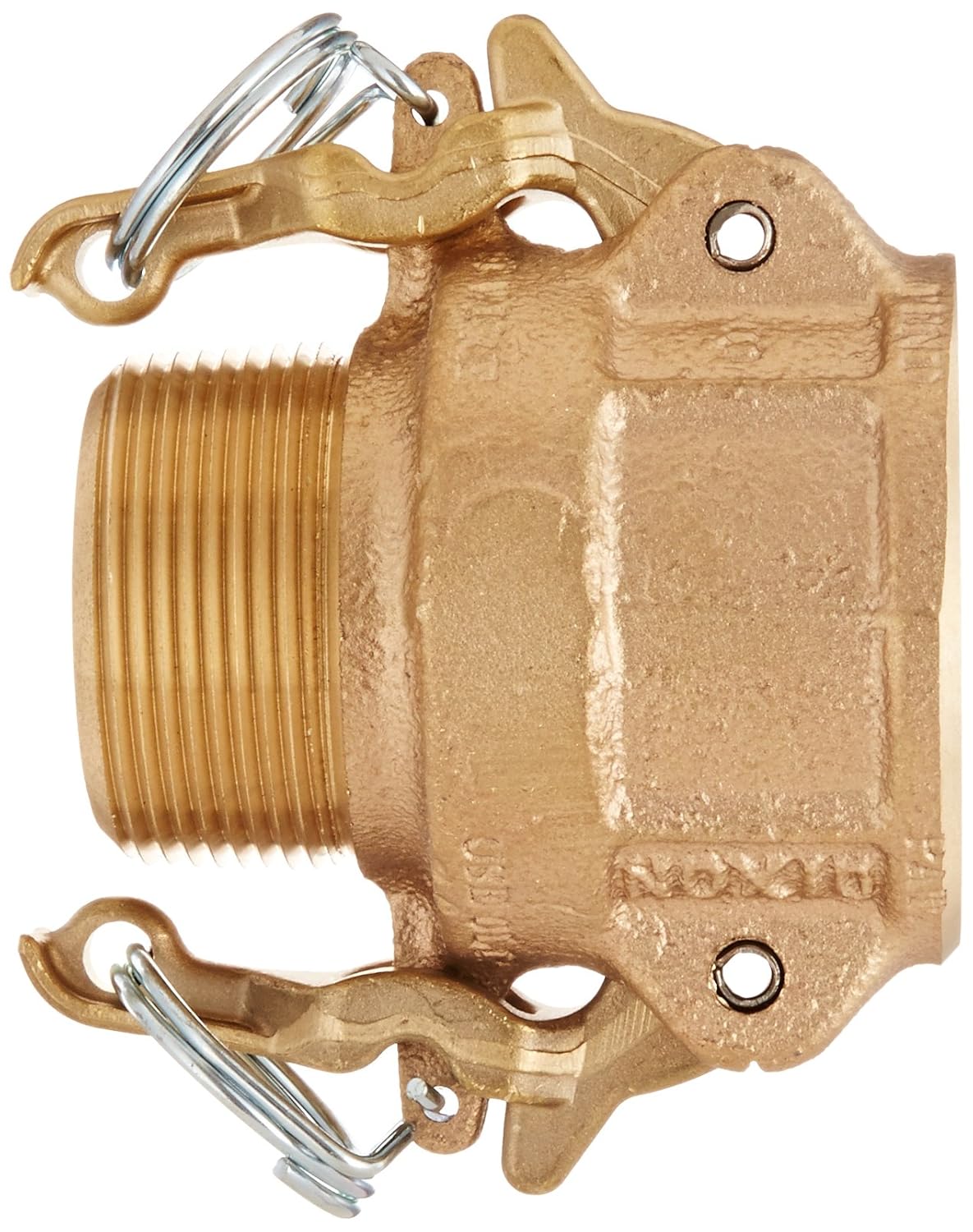 Dixon Valve Boss-Lock Type B cam and groove fitting. Boss-Lock coupler is supplied with safety clips. Made of brass. 1-1/2-inches female coupler and 1-1/2-inches NPT male. Coupler is supplied standard with a Buna-N gasket.