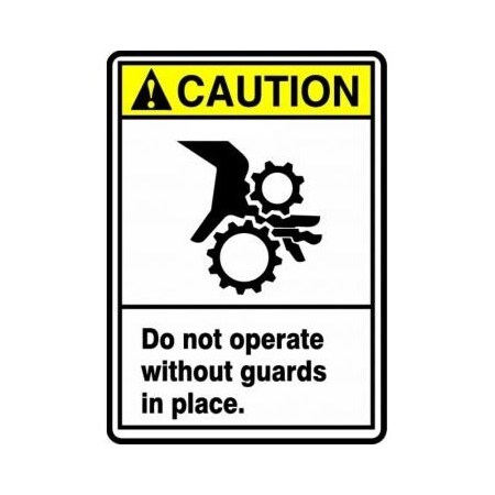 Accuform Sign with"Caution DO NOT Operate Without Guards in Place", 0.055" Thickness