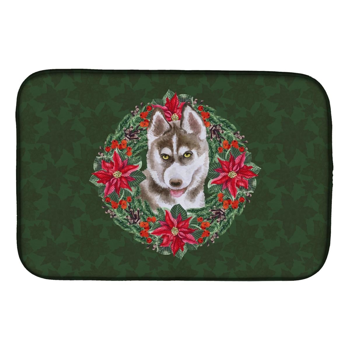 Caroline's Treasures CK1562DDM Siberian Husky Grey Poinsetta Wreath Dish Drying Mat Absorbent Dish Drying Mat Pad for Kitchen Counter Dish Drainer Mat for Countertop, 14 x 21", Multicolor