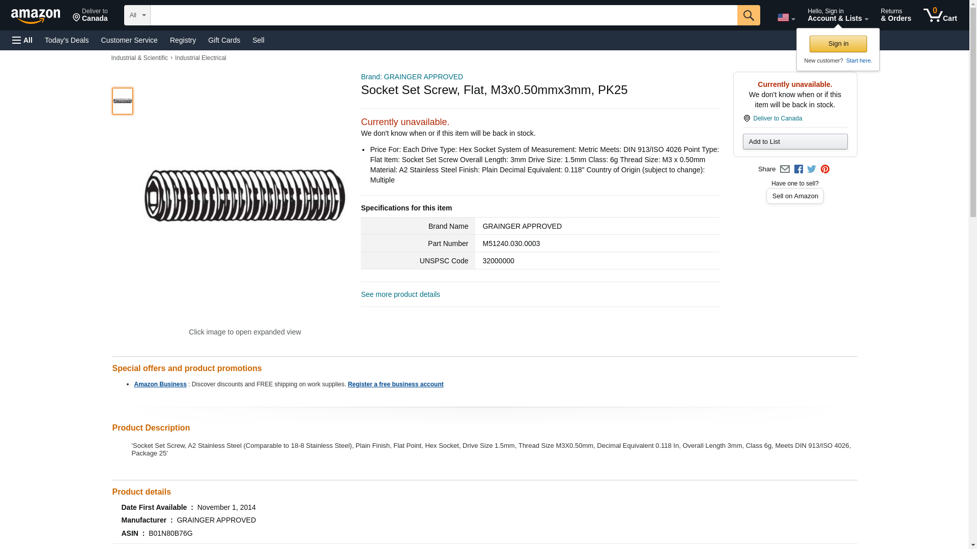 | Feature | Price For: Each Drive Type: Hex Socket System of Measurement: Metric Meets: DIN 913/ISO 4026 Point Type: Flat Item: Socket Set Screw Overall Length: 3mm Drive Size: 1.5mm Class: 6g Thread Size: M3 x 0.50mm Material: A2 Stainless Steel Finish: Plain Decimal Equivalent: 0.118" Country of Origin (subject to change): Multiple |