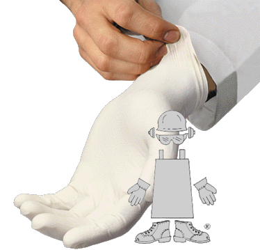 Gloves. Latex. X-Large Size. 5 Mil Thick, Rolled Cuff. Lightly Powdered. Non-Medical. FFDCA Approved for Food Contact.