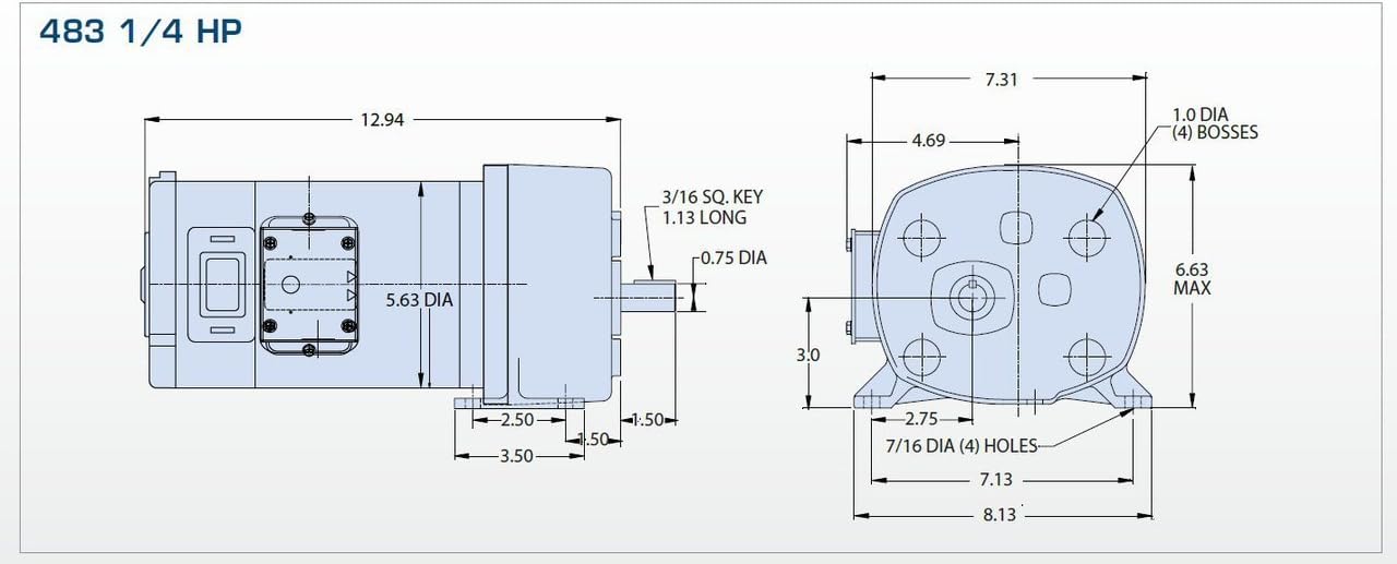 | Feature | 483 Series DC Parallel Shaft Gear Motor - Subject to factory availability-email or call for availability |