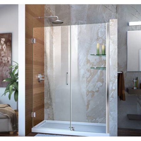 SHDR-20547210S Unidoor Frameless Hinged Shower Door With Reversible For Right Or Left Door Opening, Self-Closing Solid Brass Wall Mounted Hinges (5 Degree Offset) & In