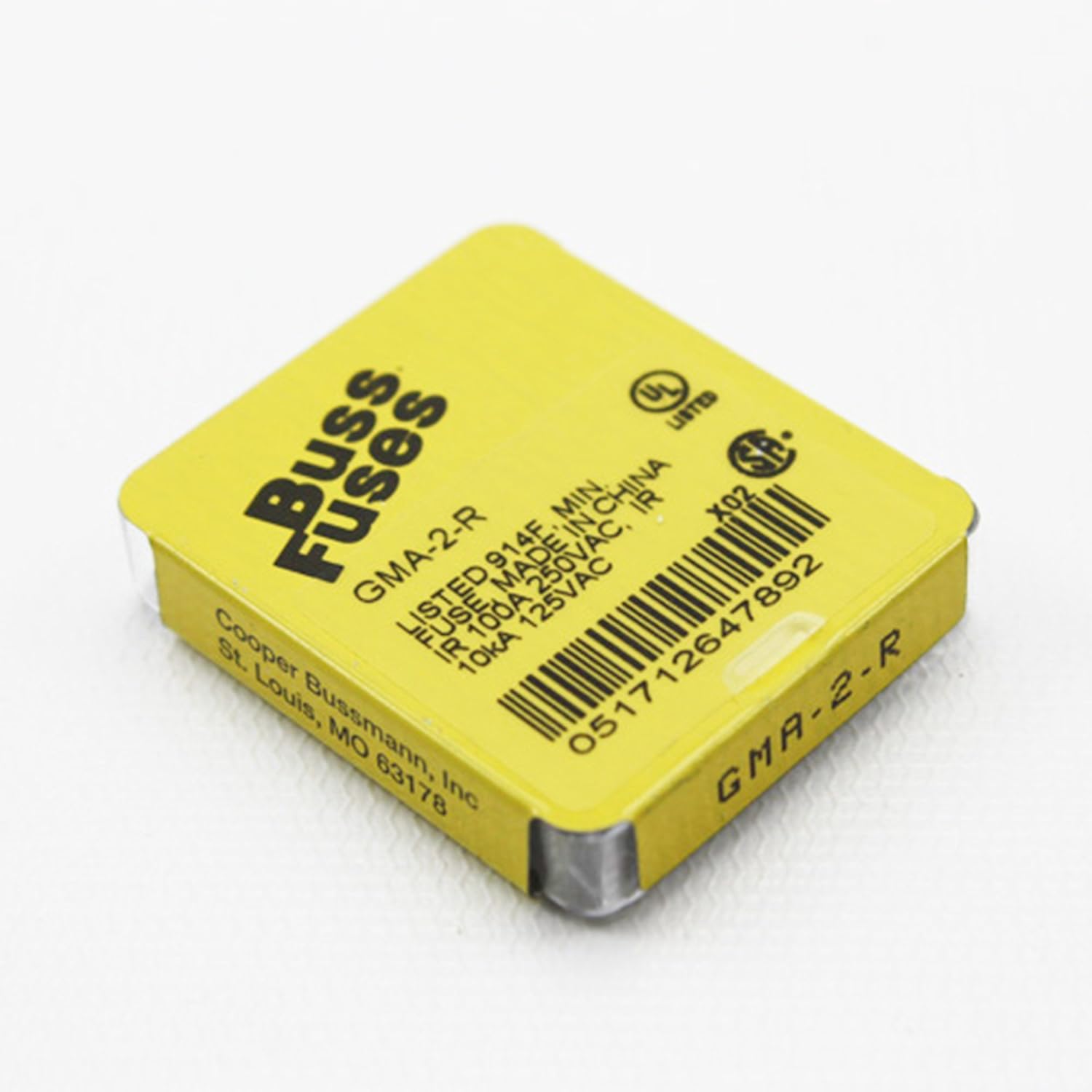 Manufacturer No. - BP/GMA-2A UPC - 051712617642Product Type: Electronic Fuse Amps: 2 amps Volts: 250 volts Individual Product Diameter: 0.1969 in. Individual Product Length: 4/5 in. Application: Electronic Circuits CSA Listed: No Endcap Construction: Nickel Plated Brass Tamper Proof: No Tube Construction: Glass Maximum Voltage: 250 volts volts Maximum Amperage: 2 amps Fuse Type: Electronic UL Listed: Yes Packaging Type: Blister Pack2 Pack, 2A Type GMA Glass Fuse, 5MM x 20MM, Electronic, Fast Acting, 250V,.2 Pack, 2A Type GMA Glass Fuse, 5MM x 20MM, Electronic, Fast Acting, 250V,.