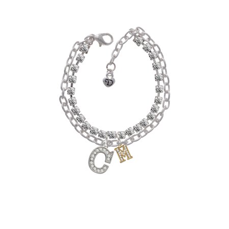 Gold Tone Small Crystal Initial - M - Beaded Border -C- Double Strand Crystal Cup Chain Madison Charm Bracelet with Beaded Crystal Initial. Gold Tone Small Crystal Initial - M - Beaded Border is approximately 0.37 x 0.42 x 0.1 inches (HxWxD) not including loop. Double Strand Crystal Madison Charm Bracelet is 6.5 Inches with a 1 Inch Extender. Bracelet is made from 4mm link chain and 4mm Clear Crystal Cupchain with Lobster Claw Clasp. Beaded Crystal Initial is approx. 0.72 x 0.48 x 0.10 inches (HxWxD) including loop. Available in A-Z. Please contact us with your order number if you would like to customize the initial. Featured item is an exclusive Delight & Co. design. We are a family owned company for over 35 years in the U.S.A. PLEASE NOTE: Our products are lead safe, but are not intended for children 14 years and younger.