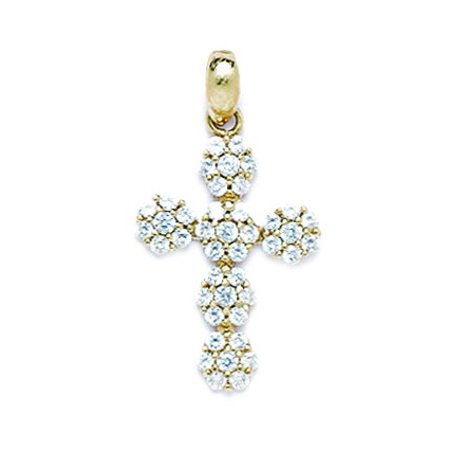 -14k Yellow Gold Cubic Zirconia Cross Pendant Measures 28x15mm-Unconditional 30 days full money back guarantee-All items are backed by our Two Year Free Repair Policy