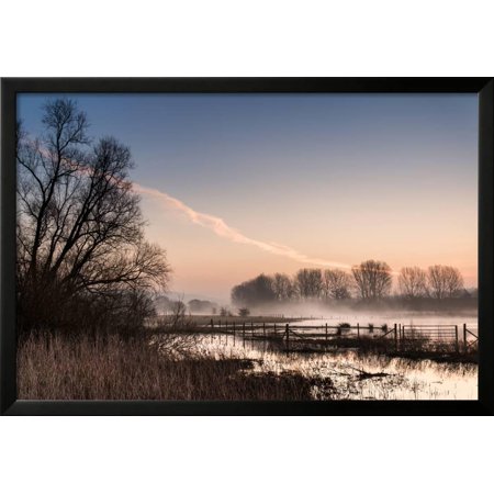 <ul> <li>Title: Landscape of Lake in Mist with Sun Glow at Sunrise</li> <li>Artist: Veneratio</li> <li>Product Type: Framed Art Print</li> <li>Framed in SOHO Black</li> <li>Arrives ready-to-hang for fast, simple installation</li> <li>Framed Size: 38x26 in.</li> <li>Handcrafted in the USA</li> </ul>