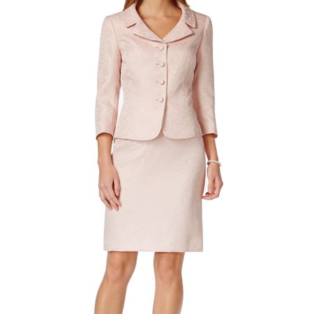 <li><b>Color:</b> Pinks</li> <li><b>Size Type:</b> Regular</li> <li><b>Size (Women's):</b> 10</li> <li><b>Lined:</b> Yes - Both Jacket and Bottoms</li> <li><b>Style:</b> Skirt Suit</li> <li><b>Material:</b> 100% Polyester</li> <li><b>Waist Size:</b> 32</li> <li><b>Pockets Top - Exterior:</b> None</li> <li><b>Pockets Top - Interior:</b> None</li>