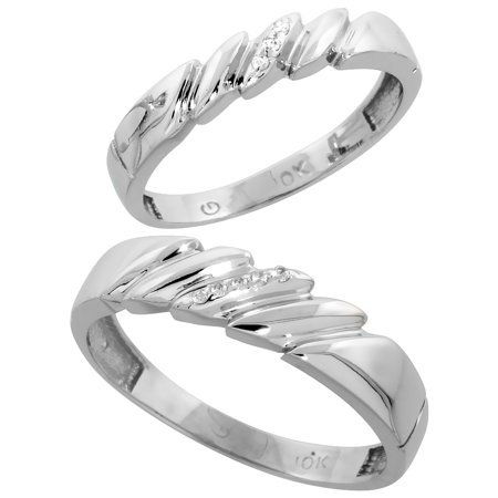 14k White Gold 2-Piece His (5mm) & Hers (4mm) Diamond Wedding Band Set, w/ 0.05 Carat Brilliant Cut Diamonds; (Ladies Size 5 to10; Men's Size 8 to 14)