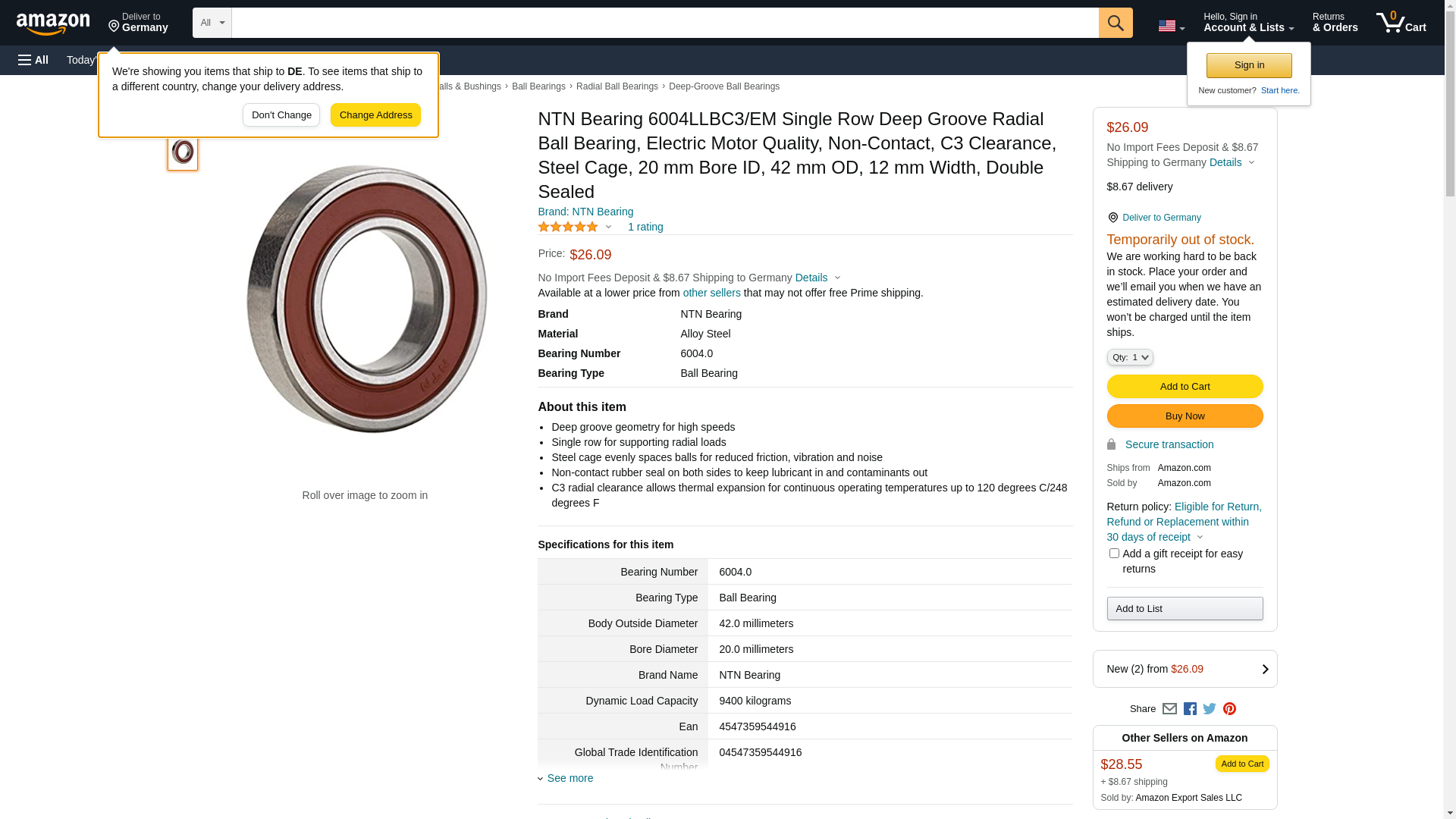 ![]() BDI Express | 6004LLBC3/EM | 1 | 108 | 1 | 1 @ $28.61 |