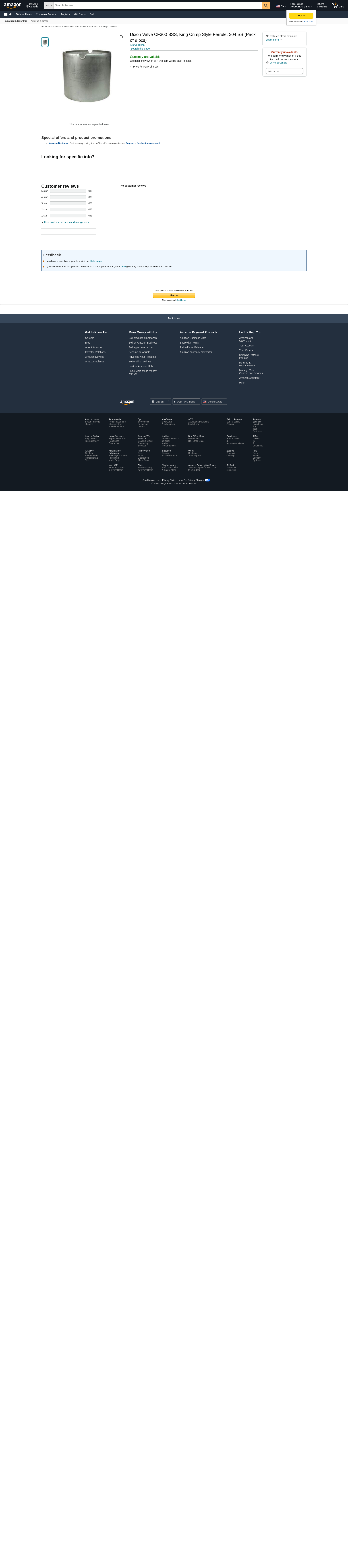 Order CF300-8SS by Dixon Valve King Crimp Style Ferrule, 304 SS - US Mega Store