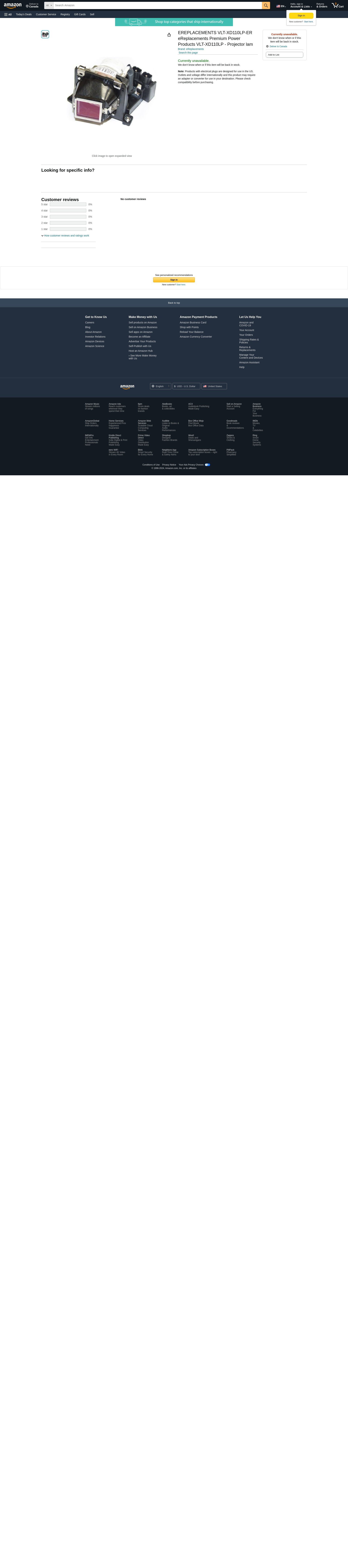 | Feature | lamp for mitsubishi front projector ereplacements llc vlt xd110lp er ... |