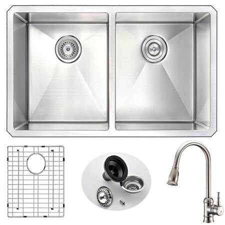 Anzzi, K32192A-130, , Vanguard Undermount Stainless Steel 32 In Double Bowl Kitchen Sink And Faucet Set With Sails Faucet In Brushed Nickel