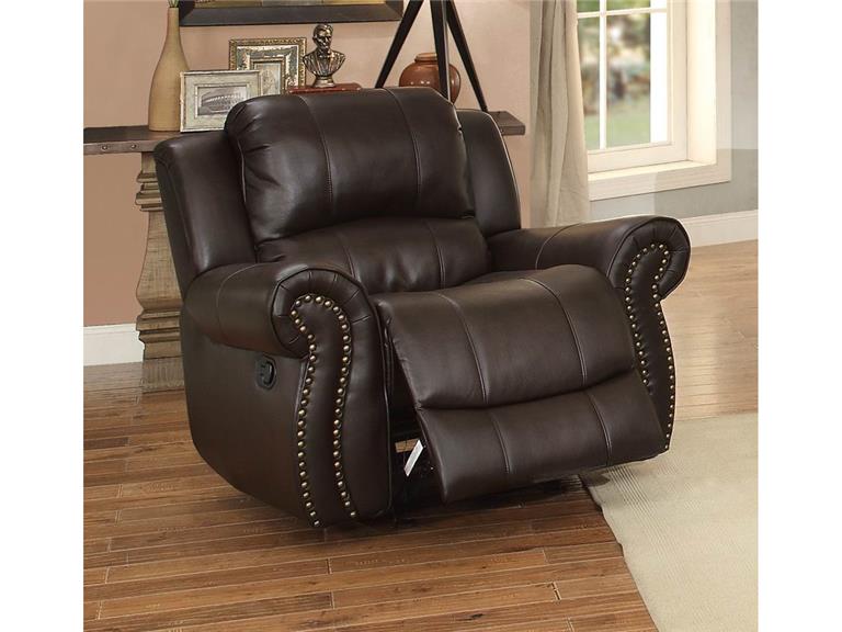 Homelegance Annapolis Glider Reclining Chair Leather Gel Match with Nailhead Trim, Dark Brown