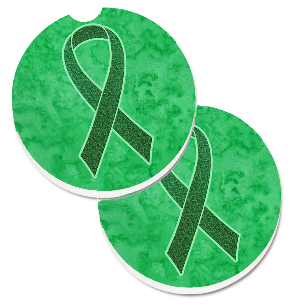 Carolines Treasures AN1220CARC Kelly Green Ribbon for Kidney Cancer Awareness Set of 2 Cup Holder Car Coaster