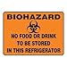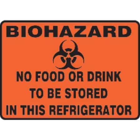 BIOHAZARD NO FOOD OR DRINK TO BE STORED IN THIS REFRIGERATOR (W/GRAPHIC) 10" x 14" Aluminum Sign