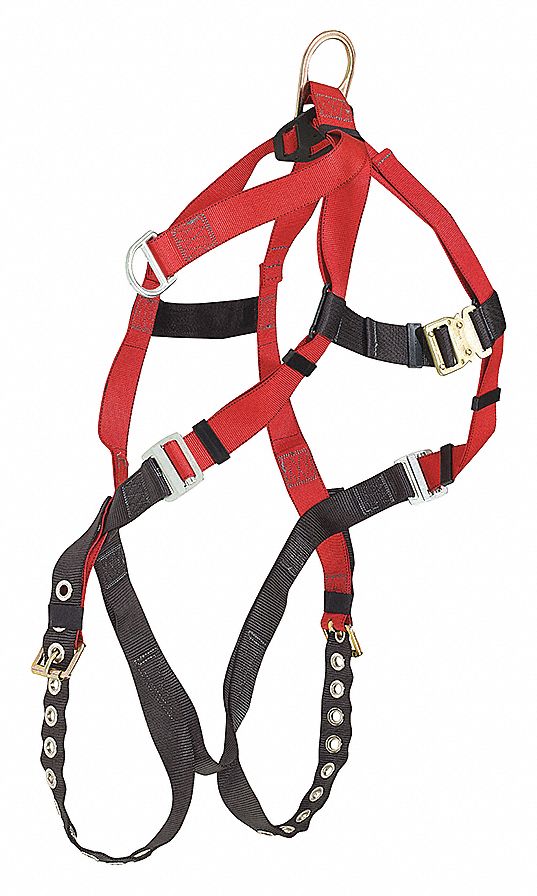 FALL ARREST HARNESS, TONGUE BUCKLE, 310 LB, SZ XL, STEEL WITH POLYESTER WEBBING