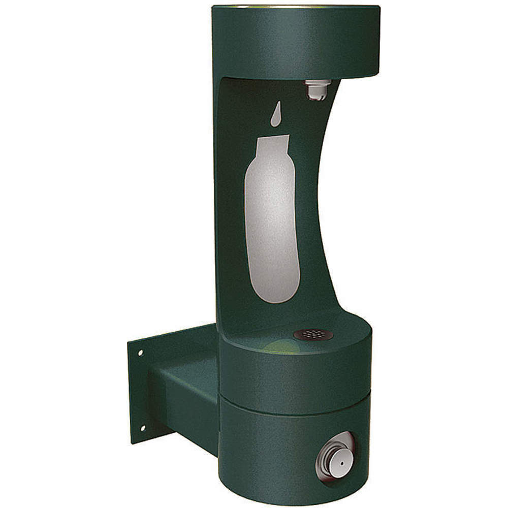 Wall-Mount Outdoor SingleLevel Pedestal Fountain With Water Refilling Station, #LK4405BF, Ideal for outdoor applications including educational campuses, recreational areas, office complex grounds, golf courses and parks. Durable tubular steel construction. Weather-resistant finish with corrosion protection internal and external coating.Features vandal-resistant one-piece bubbler and vandal resistant pushbutton activation for activeLocations. This fountain is certified by WQA toLead-free compliance including NSF/ANSI 61-ANNEX G, AB 1953.Bottle Filler is constructed of heavy-duty steel with rounded design.Laminar flow minimizes splash and allows easy maintenance. Quick fill rate at 1 gallon per minute. Self-closing, vandal resistant pushbutton does not require grasping or twisting. Easily cleaned in-line strainer screen traps particles of 140 microns orLarger before they enter the waterway. access panel is manufactured of heavy-gauge steel with vandal-resistant screws. Provides accessible Steel for easy hook-up of all plumbing connections., Lot of 1