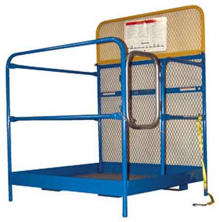 - Fork truck tine lock secures work platform to forks of fork truck