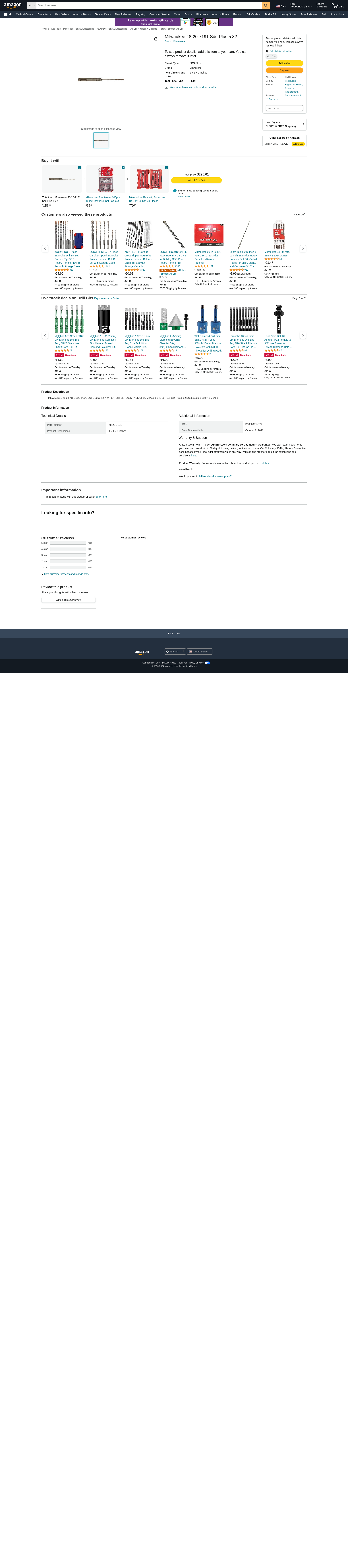 MILWAUKEE 48-20-7191 SDS-PLUS 2CT 5 32 X 4 X 7 W HEX- Bulk 25 - BULK PACK OF 25 Milwaukee 48-20-7191 Sds-Plus 5 32 Sds-plus 2ct 5 32 x 4 x 7 w hex-