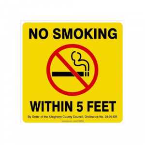 No Smoking Within 5 Feet By Order Of The Allegheny County Council 10" x 10" - MSMK453XF - Jendco Safety Supply