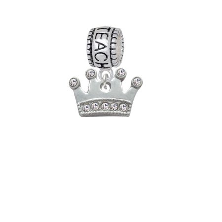 Crown with Clear Crystals - Love 2 Teach Charm Bead Hanger. Silver Tone, Hand Enameled Charms. Charm size is approx. 0.42 x 0.63 x 0.13 inches (HxWxD) including loop. Charm Hanger Bead is approx. 13x10x8 mm (HxWxD) Hole size 5.5 mm. Our Charm Beads are compatible with most Charm Bead Bracelets. Also makes a great charms pendant. Featured charms is an exclusive Delight & Co. design. We are a family owned company for over 35 years in the U.S.A. PLEASE NOTE: Our products are lead safe, but are not intended for children 14 years and younger.