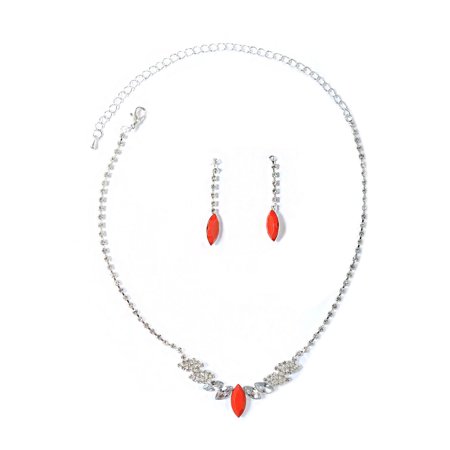 <li>high quality silver plating</li><li>perfect for wedding</li><li>The necklace measures approximately 18" long with a 6" long extender</li><li>The matching earrings measure 1.5" long</li>