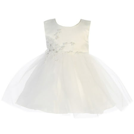 <ul> <li>Dress from Tip Top Kids will surely enchant and captivate</li> <li>Elegant Satin Bodice with Embroidery Applique</li> <li>Beautiful Tulle Skirt</li> <li>100% Polyester. Dry clean only</li> <li>Sizing is based on U.S. clothing size standards</li> </ul>