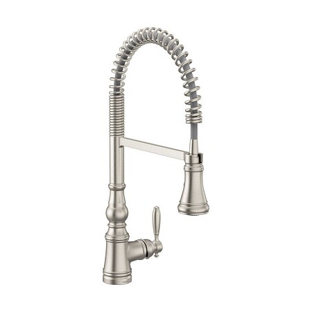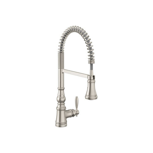 Moen Weymouth Spot Resist Stainless One Handle Pre-Rinse Spring Pulldown Kitchen Faucet, Traditional Farmhouse Kitchen Sink Faucet with Power Boost, S73104SRS