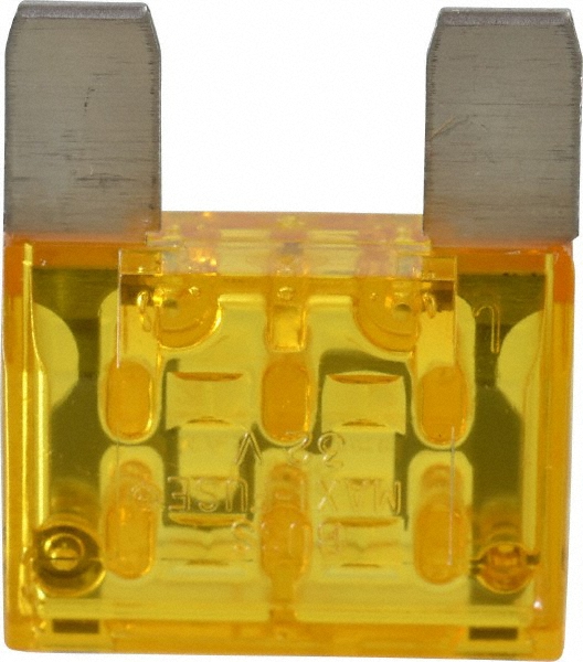 | Feature | <b>Price For:</b> Pack of 1 <b>Manufacturer</b>: Eaton <b>Product Category</b>: Automotive Fuses <b>RoHS</b>: No <b>Brand</b>: Bussmann / Eaton <b>Product</b>: Blade Fuse <b>Current Rating</b>: 20 A <b>Voltage Rating DC</b>: 32 VDC <b>Mounting Style</b>: Holder <b>Termination Style</b>: Blade <b>Fuse Type</b>: Fast Blow <b>Color</b>: Yellow <b>Indicator Style</b>: Without Indicator <b>Fuse Size / Group</b>: MAX <b>Series</b>: <b>Packaging</b>: Bulk <b>Diameter</b>: - |